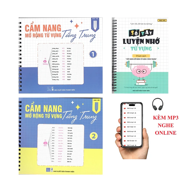 Sách combo - Cẩm nang mở rộng từ vựng tiếng Trung tập 1+tập 2+ sổ tay luyện nhớ từ vựng+KÈM MP3 NGHE ONLINE