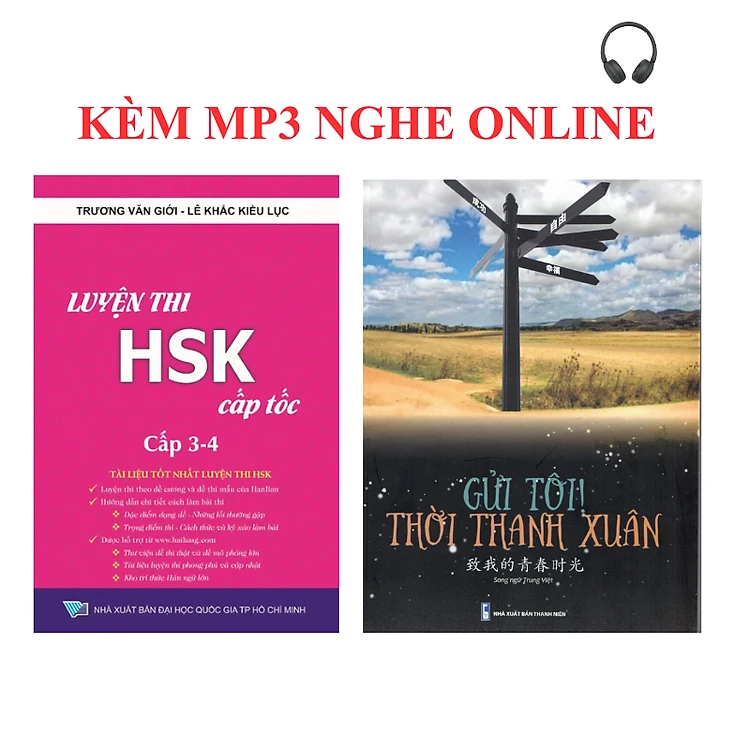 Sách - combo: Luyện thi HSK cấp tốc tập 2 (tương đương HSK 3+4 kèm CD) + Gởi tôi thời thanh xuân song ngữ Trung việt có phiên âm có mp3 nghe +DVD tài liệu
