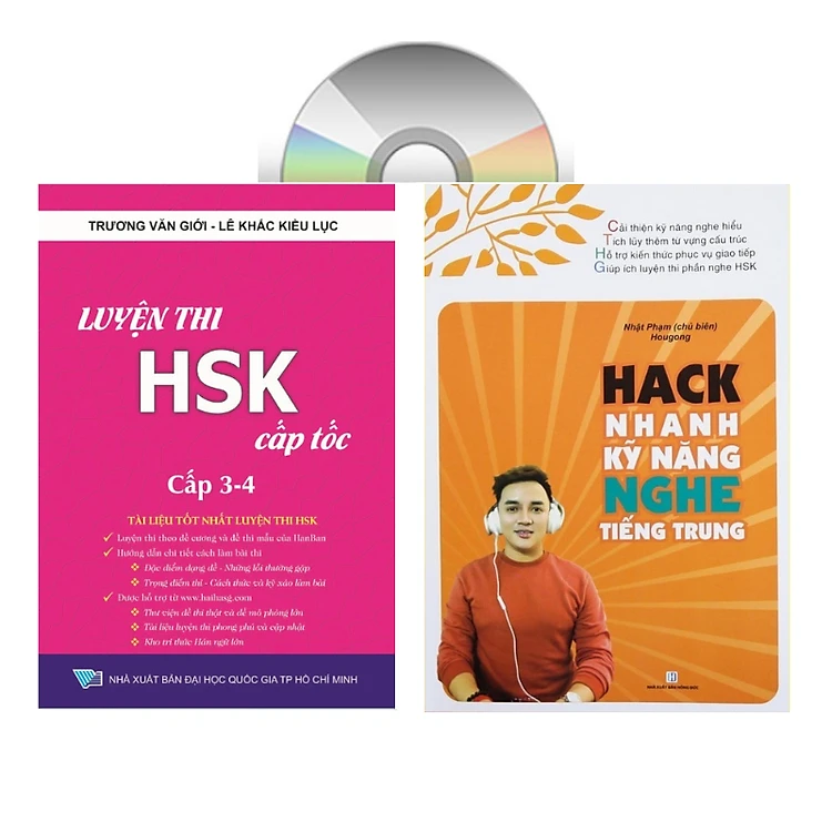 Sách - combo: Luyện thi HSK cấp tốc tập 2 (tương đương HSK 3+4 kèm CD) + Hack nhanh kỷ năng nghe tiếng trung có mp3 nghe+ DVD tài liệu