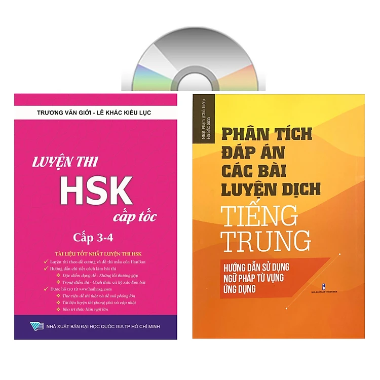 Sách - combo: Luyện thi HSK cấp tốc tập 2 (tương đương HSK 3+4 kèm CD) + Phân tích đáp án các bài luyện dịch Tiếng Trung + DVD tài liệu