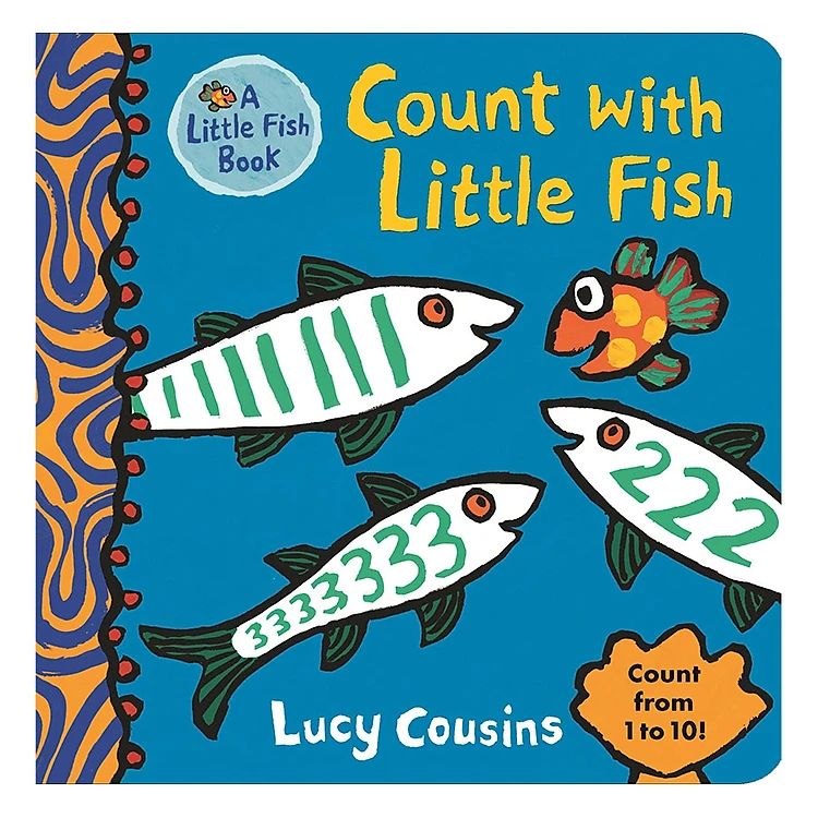 Join Little Fish on an underwater journey, and count from 1 to 10 along the way. Little readers will love Lucy Cousin’s bright, bold characters and will delight at the final page, teeming with colourful fish of all shapes and sizes. Inspired by Hooray for Fish!, this charming counting book features the spotty Little Fish and his fishy friends! Perfect for babies and toddlers and fans of Lucy Cousins, multi-award-winning creator of Maisy.