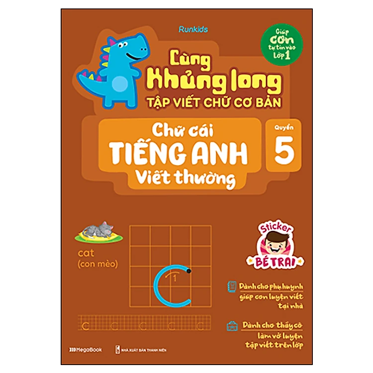 Sách Cùng Khủng Long Tập Viết Chữ Cơ Bản - Chữ Cái Tiếng Anh Viết Thường - Quyển 5 - Sticker Bé Trai