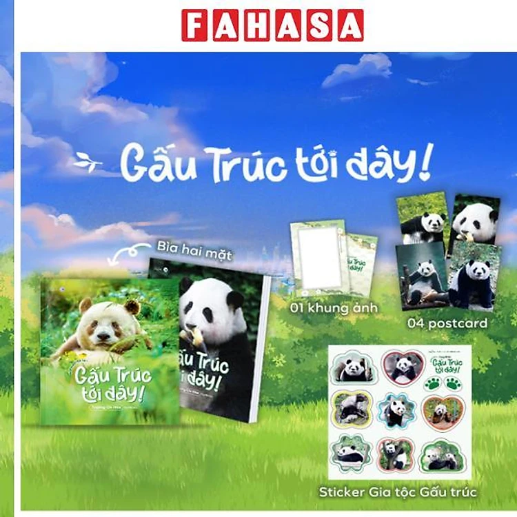 Sách - Gấu Trúc Tới Đây! - Hi Panda! Cò Le~ - Tặng Kèm 1 Khung Ảnh + 4 Postcard Hai Mặt + 1 Sticker Gia Tộc Gấu Trúc