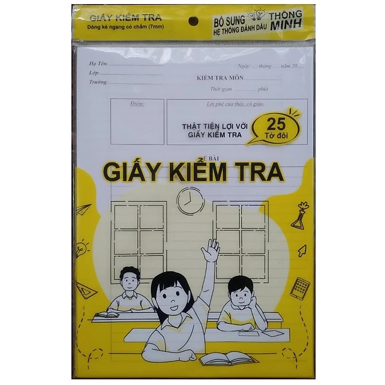 Sách Giấy kiểm tra cấp 2 (dòng kẻ ngang có chấm, 25 tờ đôi)
