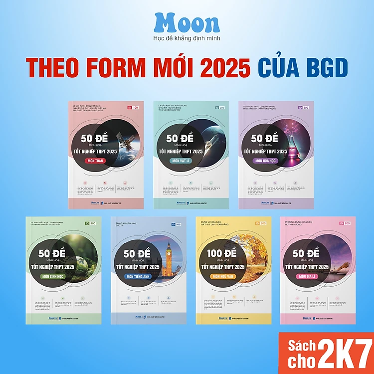 Sách ID Bộ Đề Minh Hoạ Ôn Thi THPT 2025 môn Toán, Lý, Hoá, Sinh, Anh, Văn, Sử, Địa Moonbook dành cho 2k7