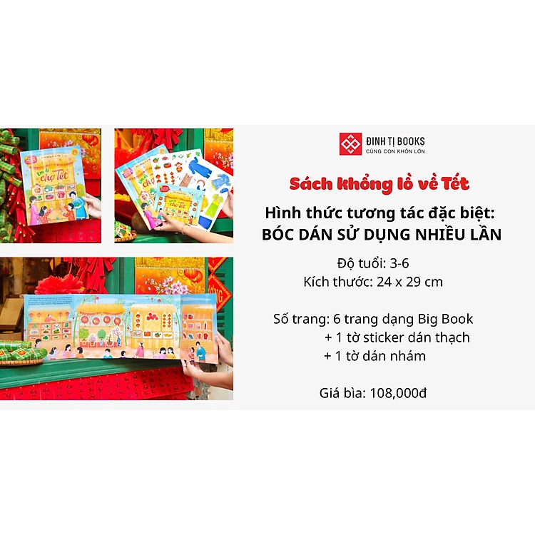 Sách Khổng Lồ Về Tết - Em Đi Chợ Tết (VớI Rất NhiềU Miếng Bóc Dán Sử Dụng Nhiều Lần)