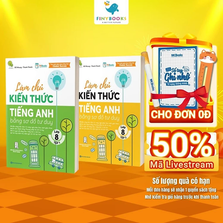 Sách - Làm chủ kiến thức Tiếng Anh bằng sơ đồ tư duy Lớp 8 (Tập 1 + Tập 2) - TKBooks