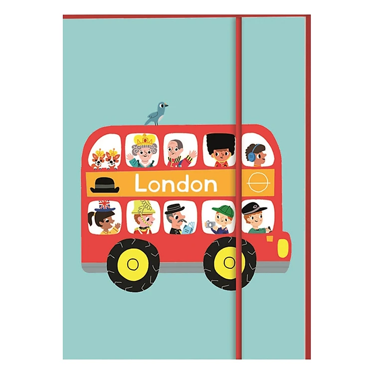 A high-quality, hard-back A6 London notebook featuring Marion Billet's illustrations of a London bus loaded with iconic passengers. The London Bus Notebook features a flick-book-style bus whizzing through its 148 unlined pages plus a nifty elastic wrap-around fastening, this is a right royal treat for all fans of London.