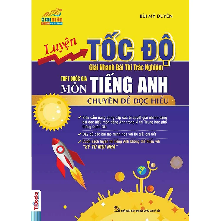 Trong mỗi đề thi Tiếng Anh, có lẽ phần đọc hiểu là phần “khó nhằn” điểm nhất. Chưa kể đến khá nhiều học sinh vốn từ vựng ít lại không chắc ngữ pháp, không có kỹ năng làm bài dẫn tới “mất trắng” điểm. Phải làm sao để giải quyết vấn đề này, phải làm sao để khi gặp dạng đọc hiểu các em thêm tự tin và hào hứng làm bài? Tác giả Bùi Mỹ Duyên - giáo viên tiếng Anh nhiều năm kinh nghiệm đã kết hợp với MCBooks xuất bản cuốn sách “Luyện tốc độ giải nhanh bài thi trắc nghiệm THPT môn tiếng anh – chuyên đề đọc hiểu” .
