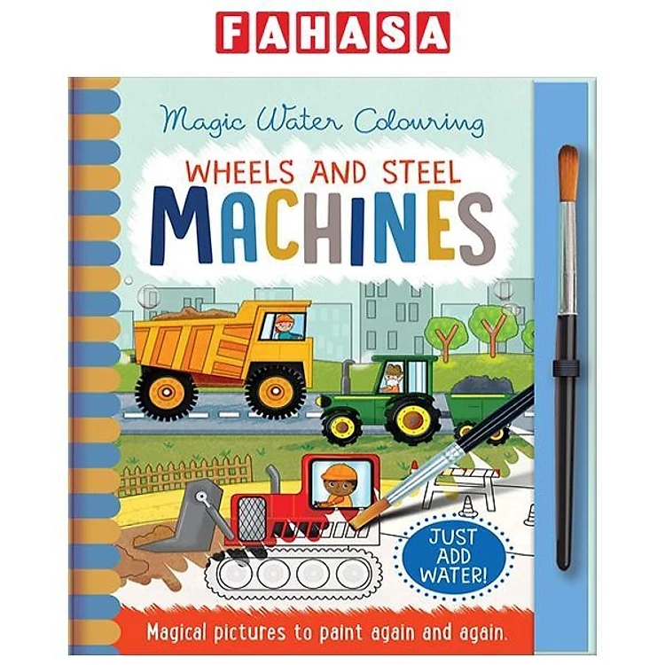 Sách ngoại văn: Wheels And Steel - Machines (Magic Water Colouring)