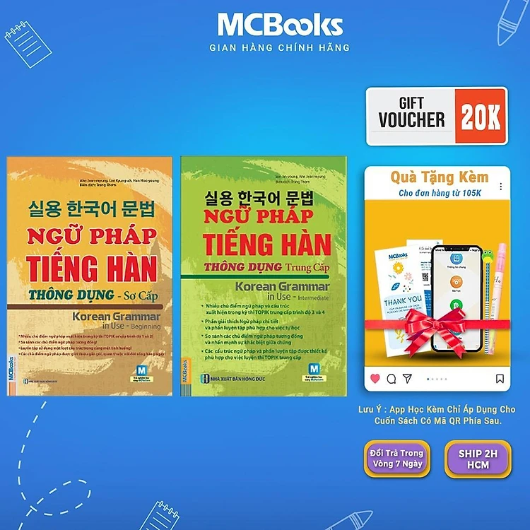 Sách - Ngữ Pháp TIếng Hàn Thông Dụng Sơ Cấp + Trung Cấp - Học Kèm App - Combo 2 Cuốn - MCBooks