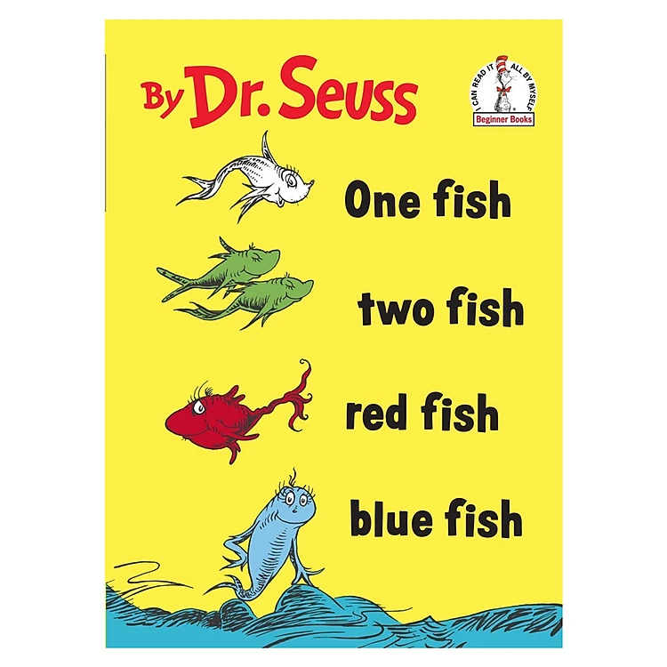 "From there to here, from here to there, funny things are everywhere"... So begins this classic Beginner Book by Dr. Seuss. Beginning with just five fish and continuing into flights of fancy, One Fish Two Fish Red Fish Blue Fish celebrates how much fun imagination can be. From the can-opening Zans to the boxing Gox to the winking Yink who drinks pink ink, the silly rhymes and colorful cast of characters create an entertaining approach to reading that will have every child giggling from morning to night: "Today is gone. Today was fun. Tomorrow is another one."