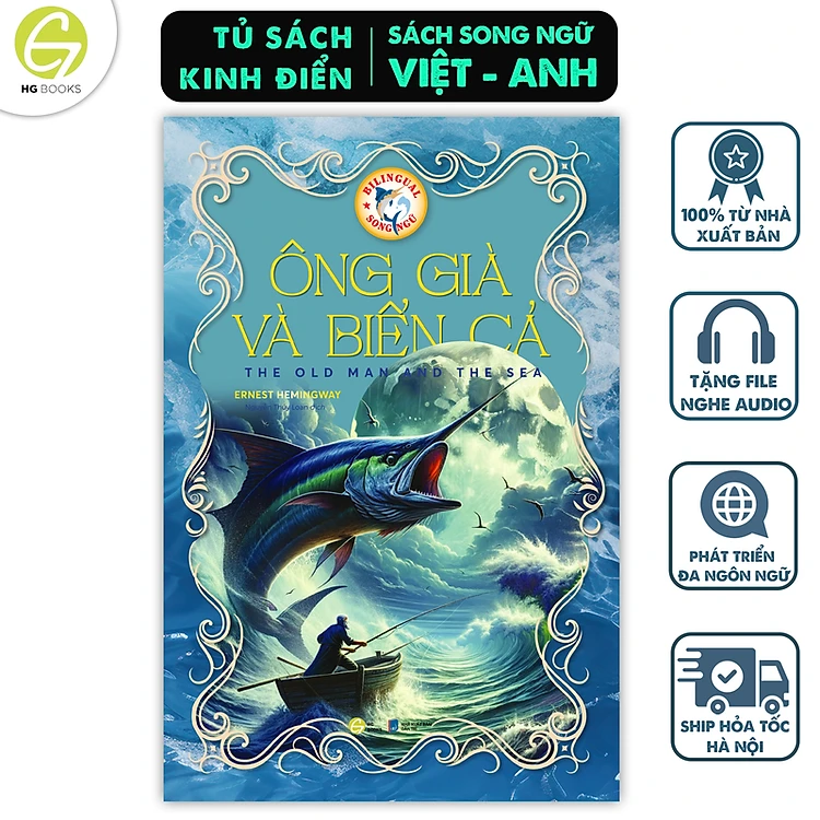 Sách song ngữ Ông Già Và Biển Cả - Tiểu thuyết kinh điển thiếu nhi tặng kèm file nghe & note từ vựng - HG Books