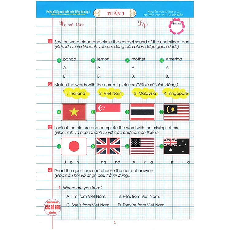 Sách - Phiếu Bài Tập Cuối Tuần Môn Tiếng Anh Lớp 4 - Dùng Chung Cho Các Bộ SGK Hiện Hành - Hồng Ân