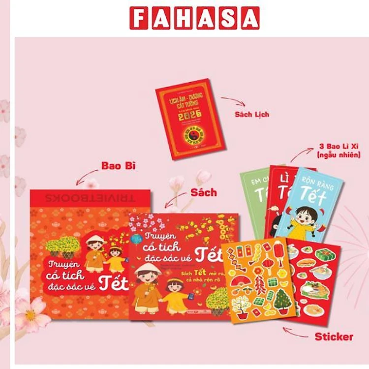 Sách - Sách Tết Mở Ra, Cả Nhà Rộn Rã - Truyện Cổ Tích Đặc Sắc Về Tết - Tặng Kèm Bao Thư + Sticker + Set 3 Bao Lì Xì + Sách Lịch Âm Dương Cát Tường 2026