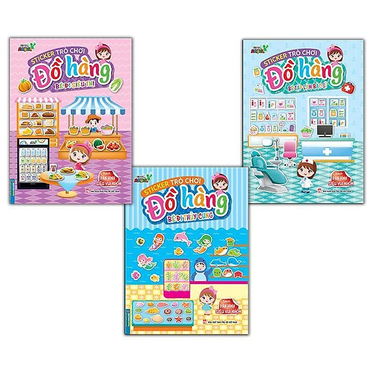 Sách - Sticker Trò Chơi Đồ Hàng - Bé Tập Làm Bác Sĩ + Bé Đi Thủy Cung + Bé Đi Siêu Thị - Combo 3 Cuốn - Minh Thắng