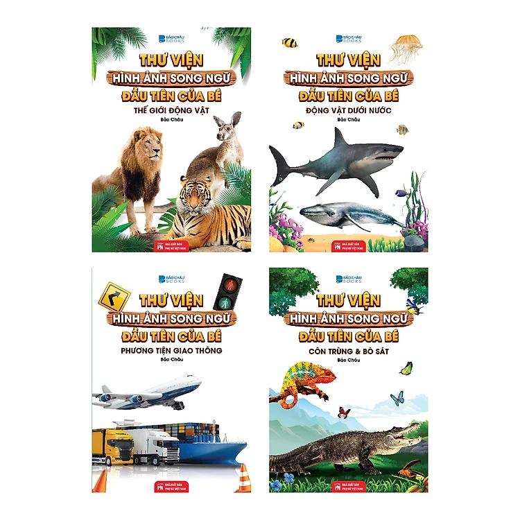 Từ Điển - Thư Viện Hình Ảnh Song Ngữ Đầu Tiên Của Bé - Thế Giới Động Vật - Động Vật dưới Nước - Phương tiện Giao Thông - Côn Trùng Và Bò Sát ( bộ 4 cuốn )