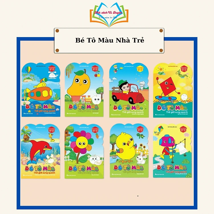 Sách Tô Màu - Bé tô màu nhà trẻ song ngữ việt anh - Bộ 8 quyển