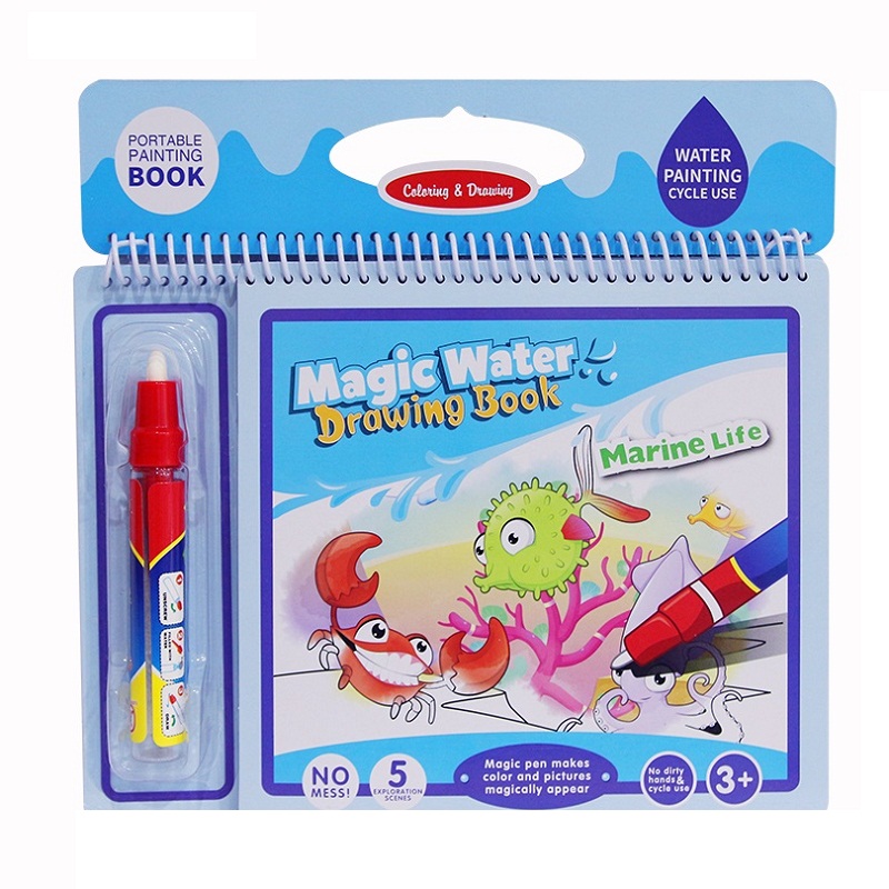 - Sách kèm theo 01 chiếc bút nước. Trước khi tô, đổ nước vào bên trong bút, khi tô bút đến đâu màu sắc bức tranh sẽ hiện lên tới đó.