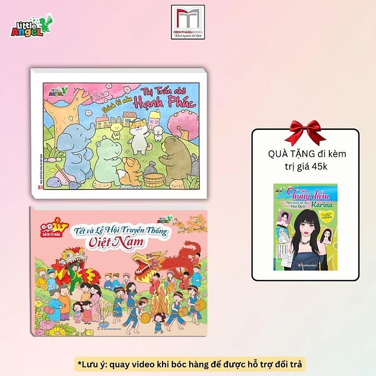 Sách Tô Màu - Tết Và Lễ Hội Truyền Thống Việt Nam + Thị Trấn Nhỏ Hạnh Phúc - Bìa Có Nhũ - Combo 2 Cuốn - Minh Thắng