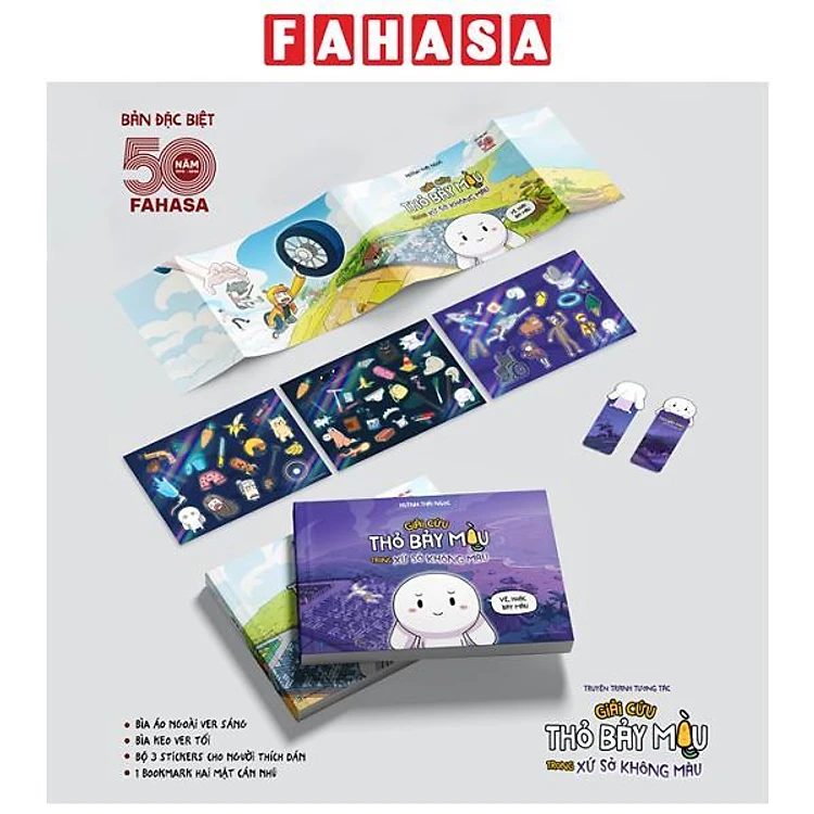 Sách - Truyện Tranh Tương Tác - Giải Cứu Thỏ Bảy Màu Trong Xứ Sở Không Màu - Bản Đặc Biệt Fahasa - Tặng Kèm 1 Bìa Áo Ngoài Phiên Bản Sáng + 1 Bookmark 2 Mặt Cán Holo + 3 Sticker Cán Holo