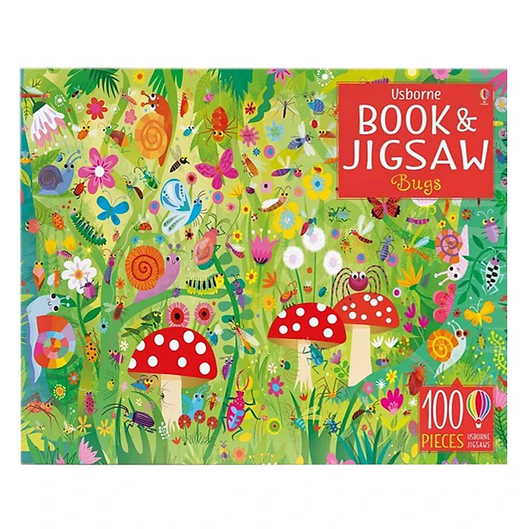 A brilliantly colourful 100-piece jigsaw showing a busy, bug-filled scene, plus a 24-page picture puzzle book presented together in a sturdy box. The jigsaw measures 59 x 40cm and both the jigsaw and book are full of insects to spot. Can you find an ant in a deckchair, a butterfly blowing a trumpet, a dragonfly riding a broom and lots more?