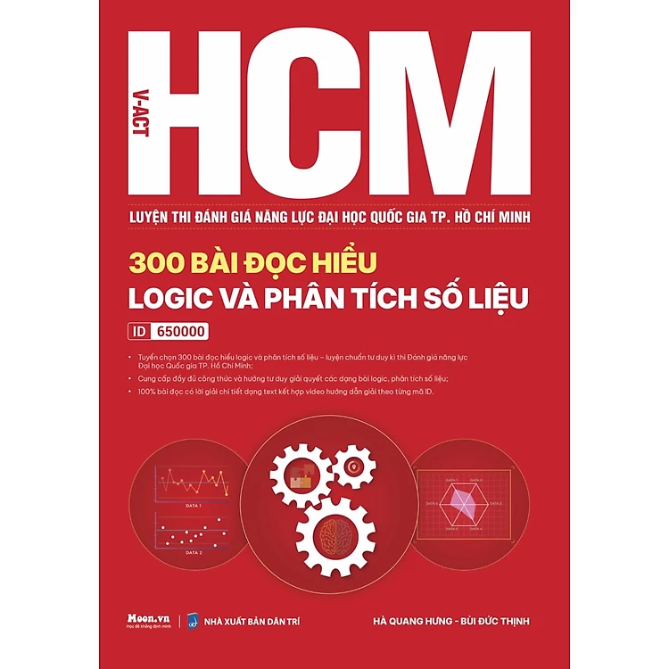 Sách V-ACT luyện thi đánh giá năng lực Đại học quốc gia TP.HCM - 300 bài đọc hiểu logic và phân tích số liệu - MoonBook