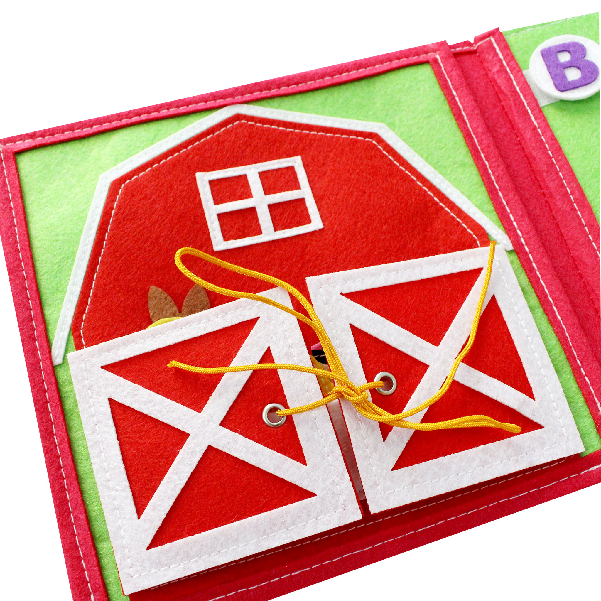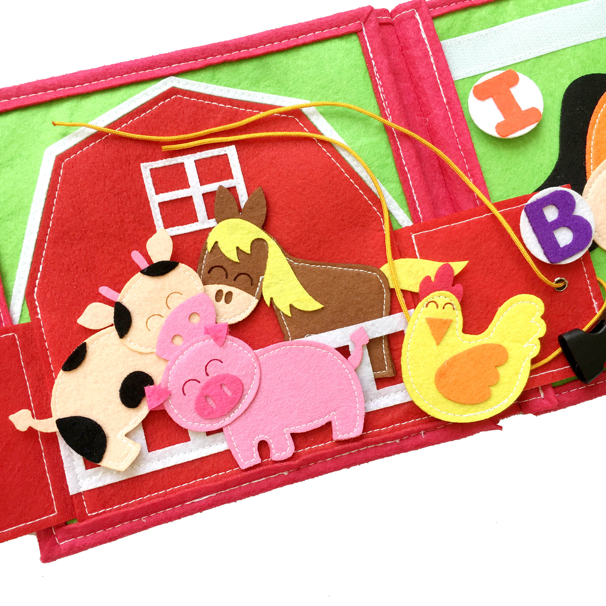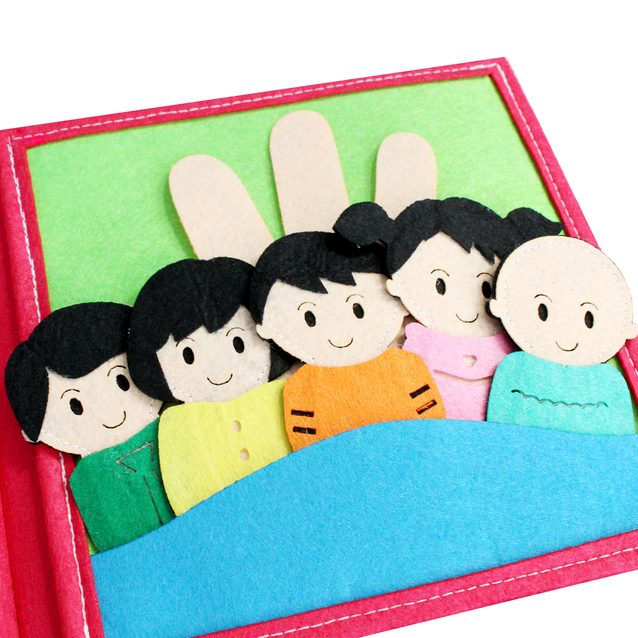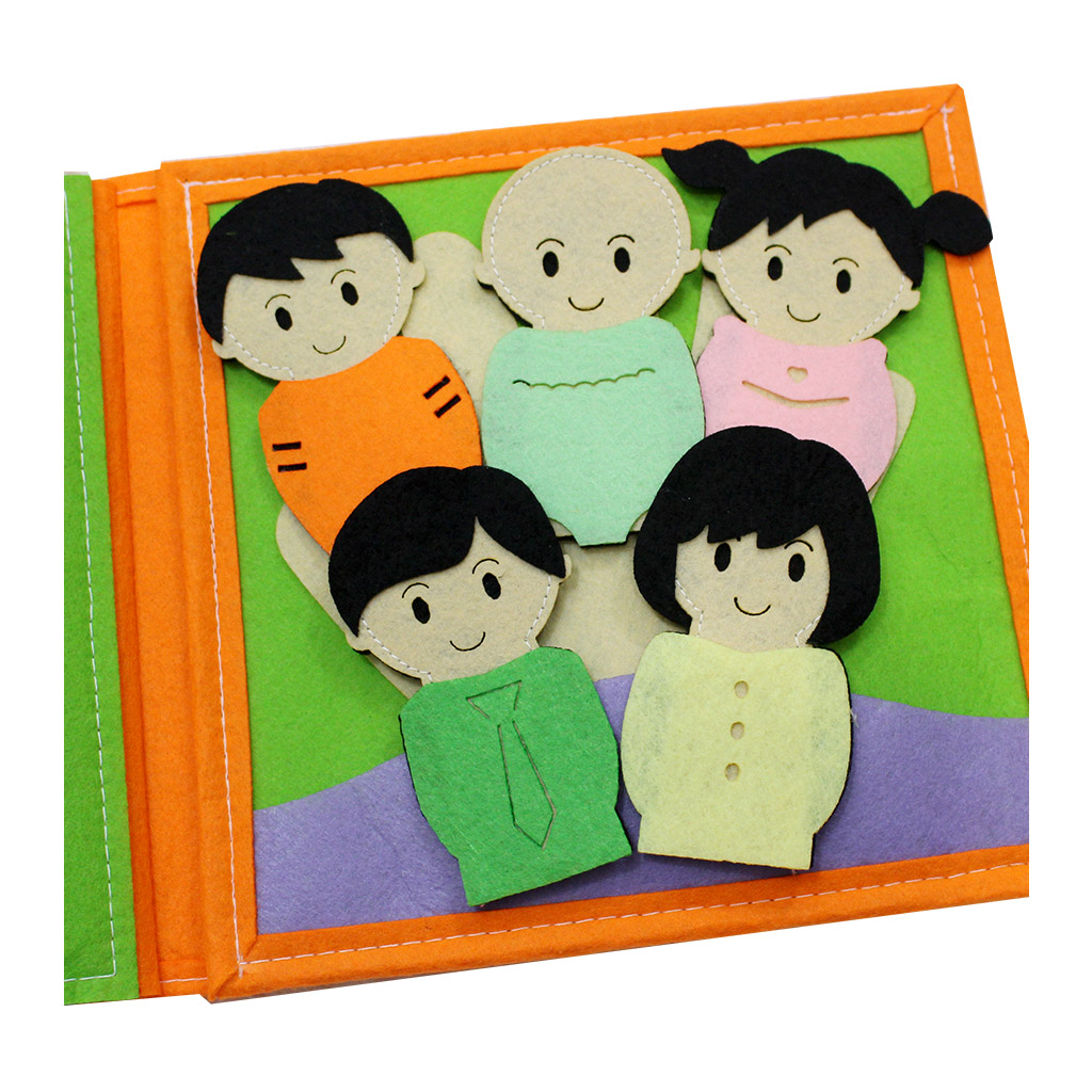 Cuốn sách mang nội dung của những bài hát tiếng Anh nổi bật bé yêu thích (Twinkle twinkle little star, Old McDonal had a farm, Bingo, Five little ducks, Baa baa black sheep, The animal sounds, Family Finger, If you're happy and you know it,...) đan xen tích hợp các kĩ năng vận động tinh cho đôi tay khéo léo như: Bóc dán, cài khuy, bấm cúc, cài cúc, xỏ dây, kéo khoá,... Cấu trúc sách bao gồm 8 trang kĩ năng, mỗi trang kích thước 20 x 20 (cm). Nền vải dạ an toàn, may tỉ mỉ với chỉ cotton dày dặn chắc bền. Sách phù hợp với trẻ em từ 0-6.