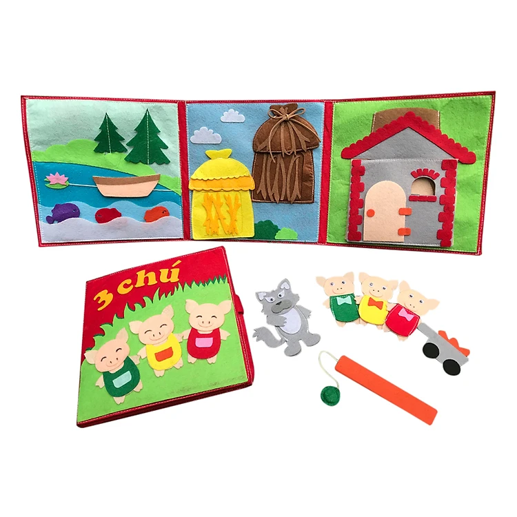 - Sách Vải Sabe Kể Chuyện Ba Chú Lợn có một số chi tiết tương tác làm bé hứng thú như: câu cá, xếp hình nhà, cho tay vào con rối….