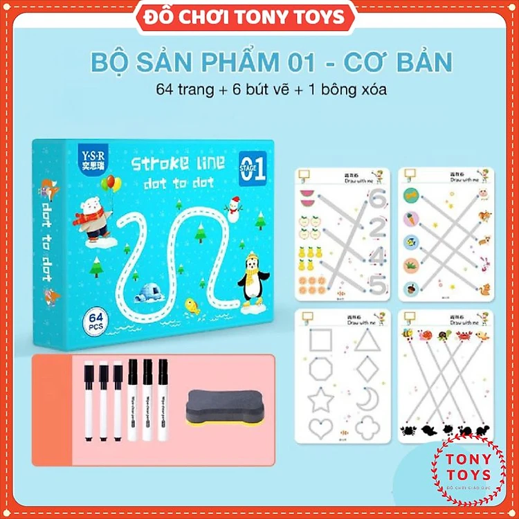 Đồ Chơi Montessori Sách Viết Xóa Được STROKE LINE DOT TO DOT STAGE Thông Minh 64 Trang Chất Liệu Cao Cấp - Tặng Bút và Xóa Cho Bé