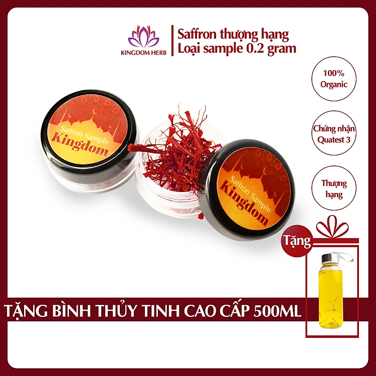 Saffron Kingdom Herb nhụy hoa nghệ tây Iran hộp 0.2 gram, hàng chính hãng super negin thượng hạng (Tặng bình nước thủy tinh)