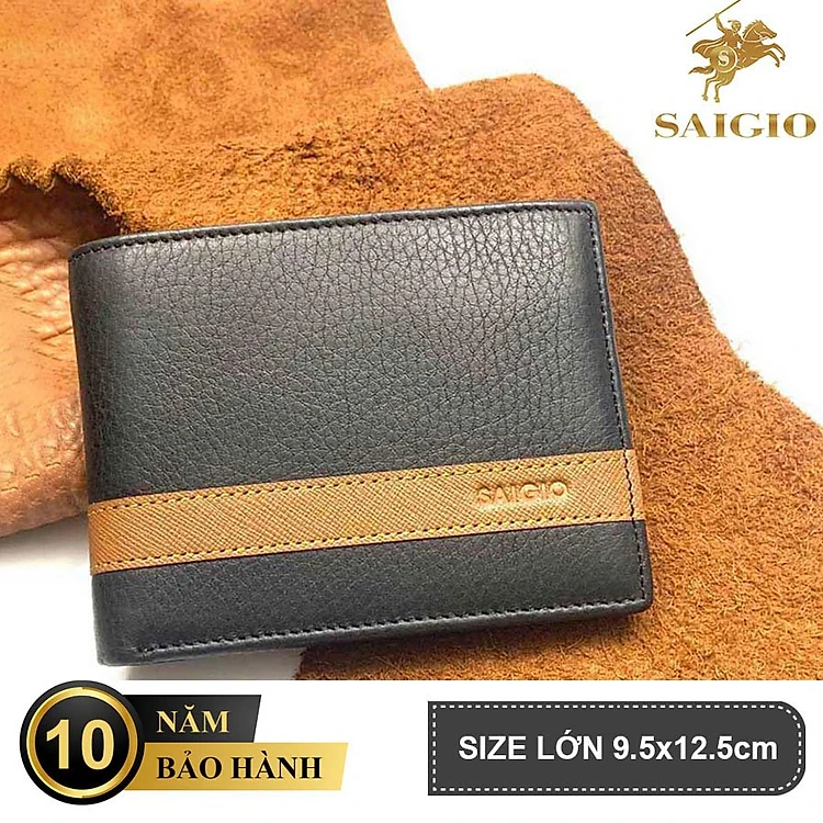 Bóp Nam Da Bò Mềm Mại STRIPE, Size Lớn, 10 Ngăn Để Thẻ, 3 Ngăn Đựng Tiền, Dáng Ngang - Gập 2, Có Khóa Kéo, Để Vừa Các Giấy Tờ Chuyên Dụng Như Giấy Tờ Xe Máy, Bảo Hiểm