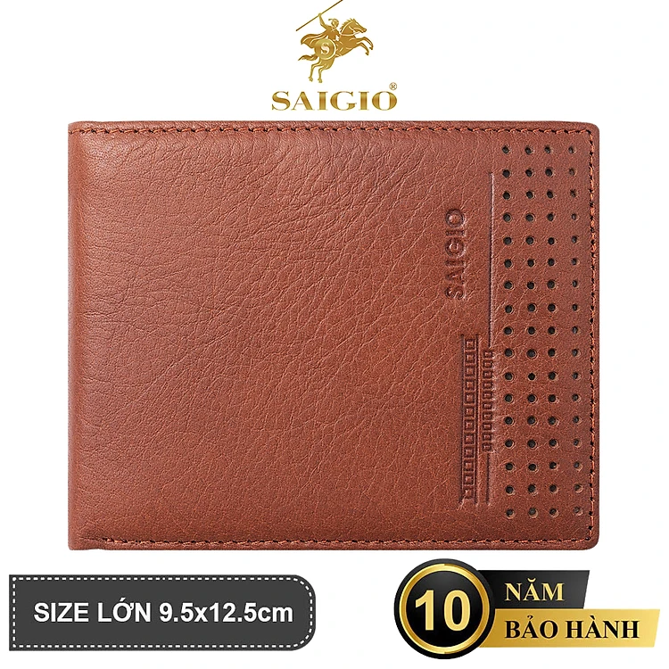 Bóp Nam Da Bò SÁP Họa Tiết Polka Dot, Size Lớn, Thiết Kế Cổ Điển, Đơn Giản - Mỏng Nhẹ, Dáng Ngang - Gập 2, Ngăn Đựng Tiền Có Khóa Kéo, Nhiều Ngăn Để Giấy Tờ Tiện Dụng