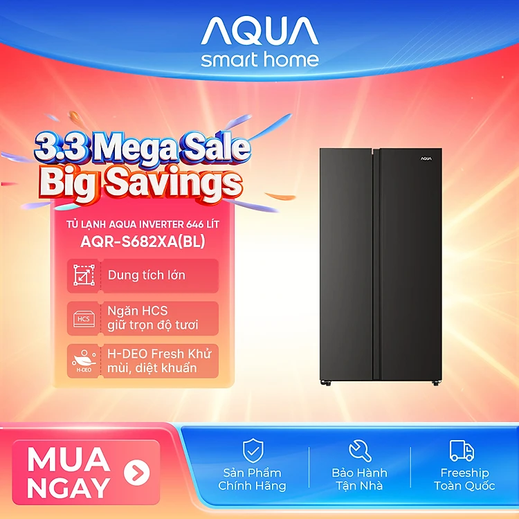 [SALE SỐC] Tủ lạnh Aqua Inverter 646 lít AQR-S682XA(BL) - Bảo hành 2 năm - Freeship toàn quốc - Hàng chính hãng