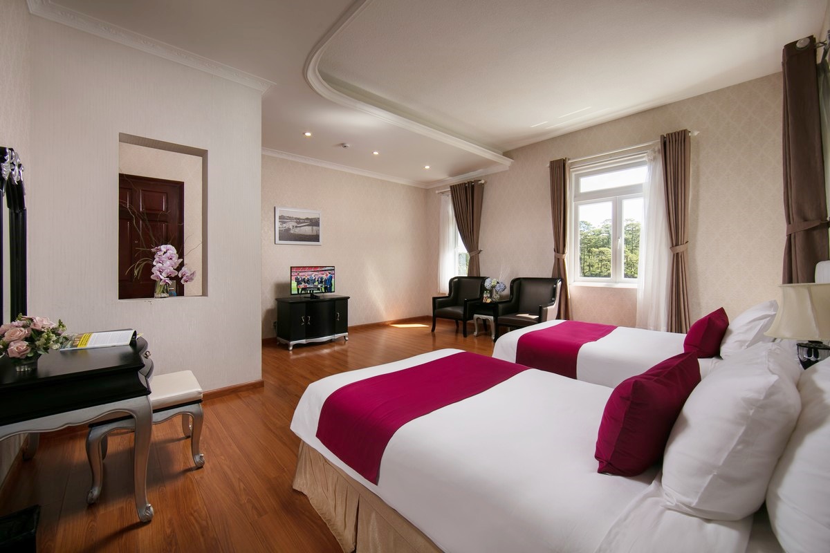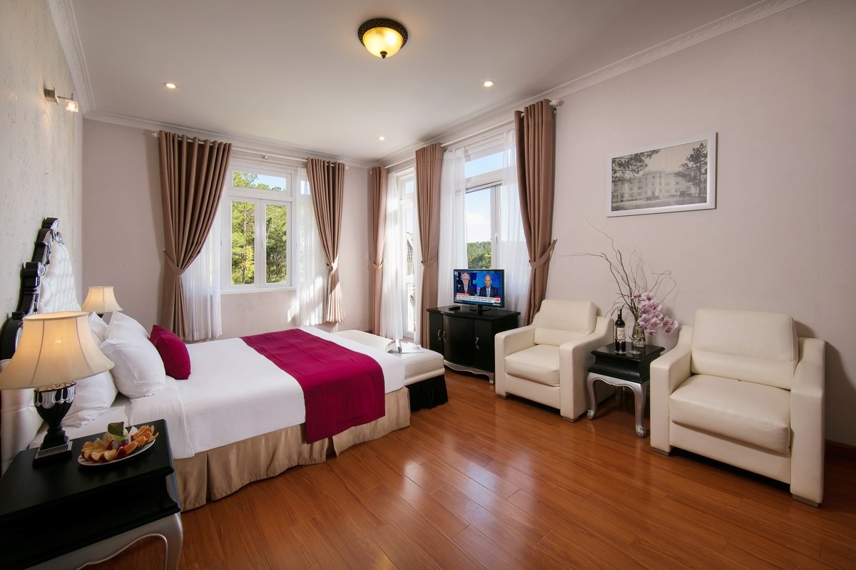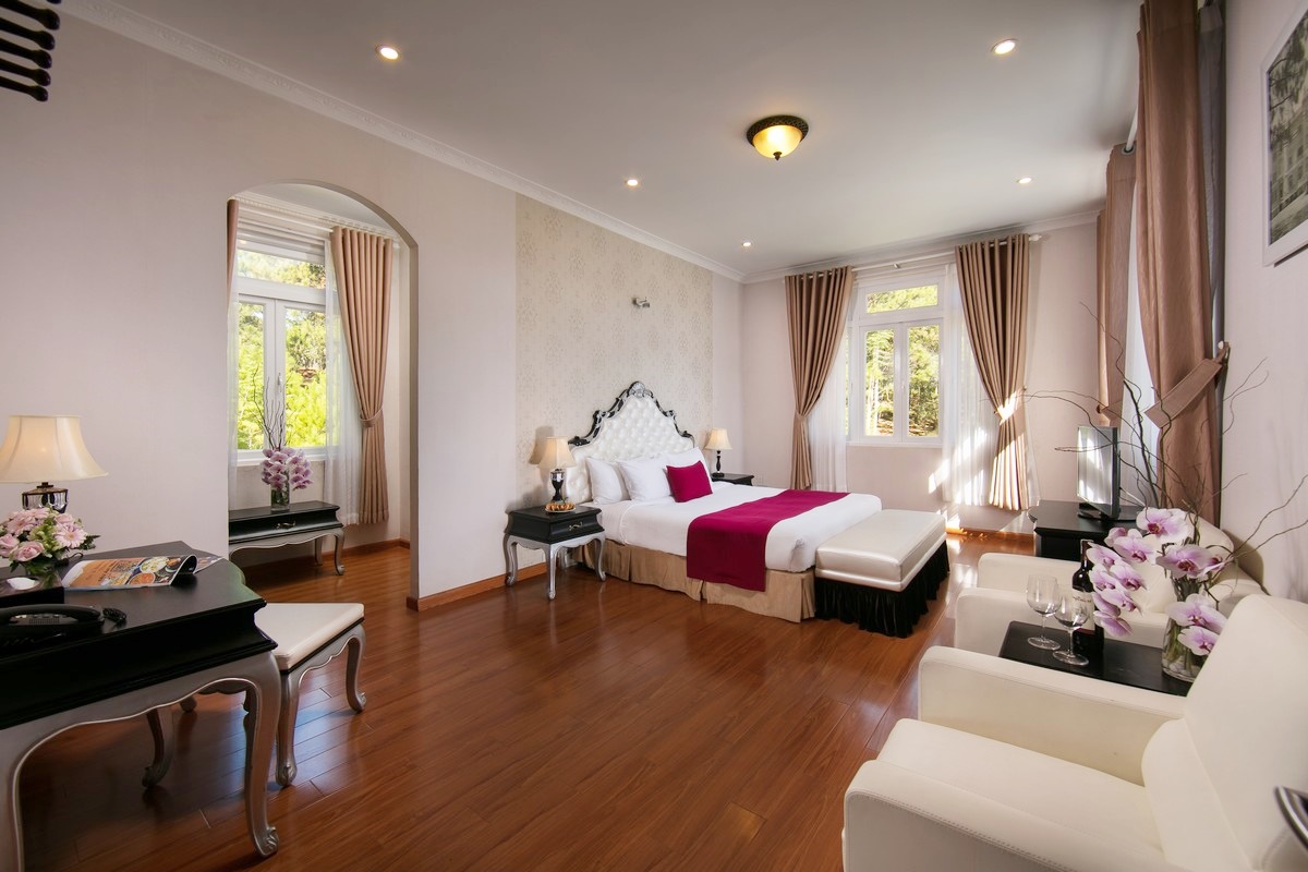 Không chỉ dừng lại ở việc giới thiệu một "thị trấn Pháp" bên hồ Tuyền Lâm, Tiki còn đem đến cơ hội nghỉ dưỡng tại các phòng nghỉ cao cấp như Standard, Deluxe Garden View cùng nhiều ưu đãi đặc biệt dành cho 02 người tại SAM Tuyền Lâm Resort Đà Lạt 4*. Mỗi phòng có diện tích từ 25 - 48m2, được trang bị giường King rộng rãi, phong cách châu Âu hiện đại, sang trọng mà ấm cúng. Đặc biệt là hướng nhìn ra đồi thông hoặc vườn hoa bên cạnh yên ả.