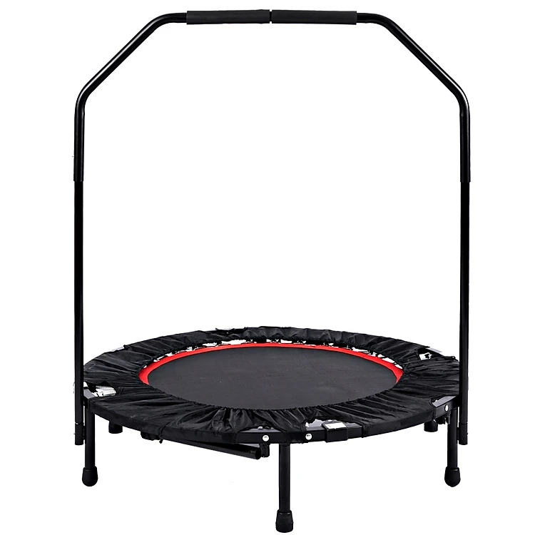 - B&G 40-Inch Bounce Fit Foldable Trampoline With Armrest với tay vịn vào một khung màu đen, kiểu dáng đẹp, được thiết kế độ bền cao và hơn bất kỳ cuộn dây thép lò xo rebounder.