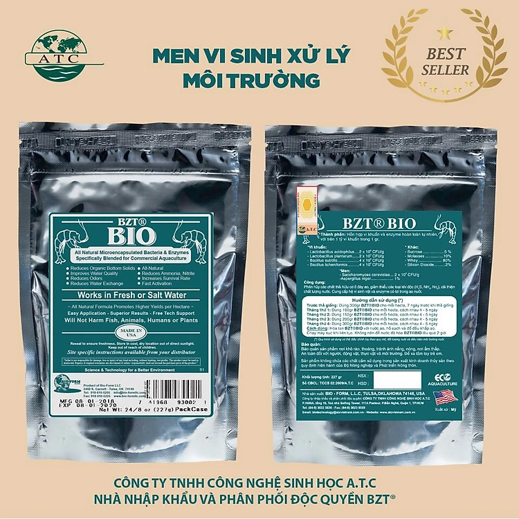 Sản phẩm men vi sinh BZT BIO được sản xuất và đóng gói bởi công ty BIO FROM LLC - Mỹ, có thương hiệu BZT được bảo hộ độc quyền tại Mỹ và Việt Nam.