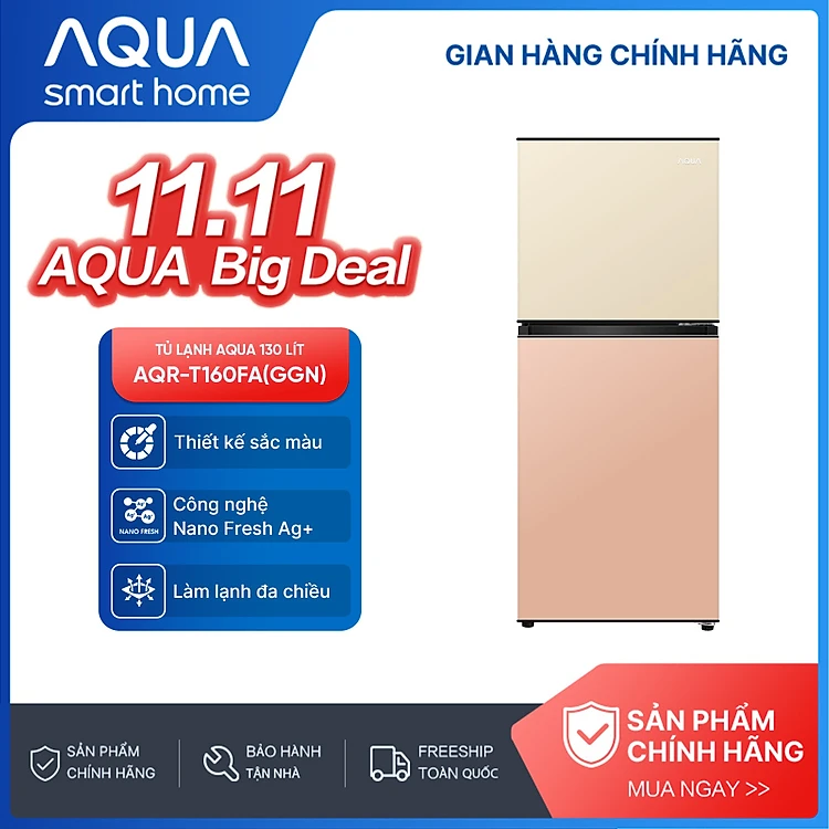 [SẢN PHẨM MỚI 2025] Tủ lạnh AQUA 130 lít ngăn đá trên AQR-T160FA(GGN) - Màu Be hồng - Freeship toàn quốc - Bảo hành 2 năm - Hàng chính hãng
