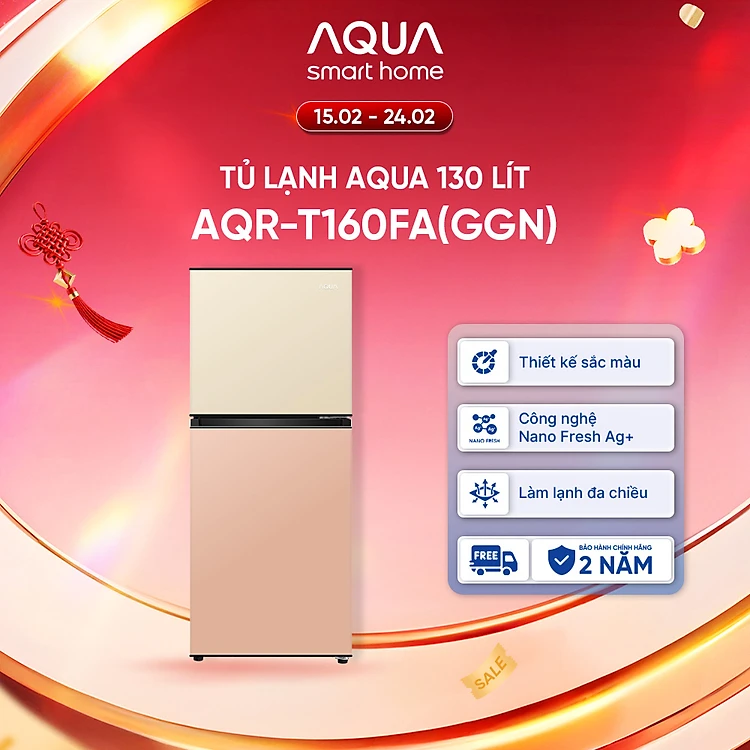 [SẢN PHẨM MỚI 2025] Tủ lạnh AQUA 130 lít ngăn đá trên AQR-T160FA(GGN) - Màu Be hồng - Freeship toàn quốc - Bảo hành 2 năm - Hàng chính hãng