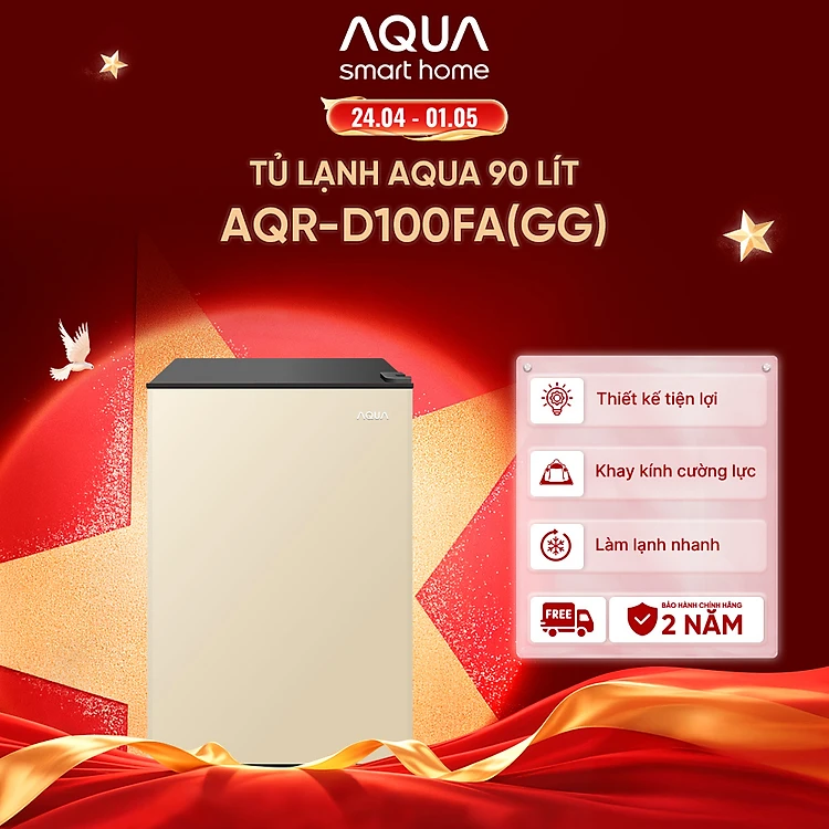 [SẢN PHẨM MỚI 2025] Tủ lạnh Aqua 90 lít AQR-D100FA(GG) - Màu be - Freeship toàn quốc - Có hỗ trợ đổi sang hồng - Hàng chính hãng