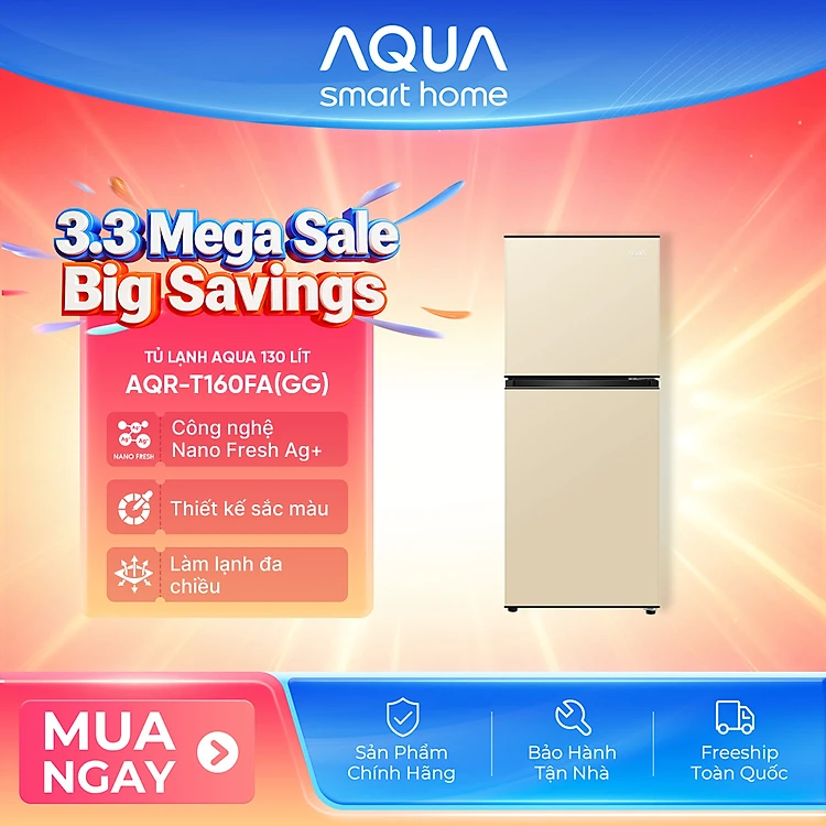 [SẢN PHẨM MỚI 2025I] Tủ lạnh AQUA 130 lít ngăn đá trên AQR-T160FA(GG) - Màu Be - Freeship toàn quốc - Bảo hành 2 năm - Hàng chính hãng