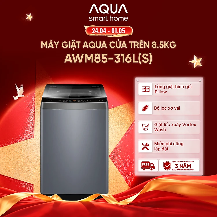 [SẢN PHẨM MỚI] - Máy giặt cửa trên 8.5kg AWM85-316L(S) - Bảo hành 2 năm - Freeship toàn quốc - Hàng chính hãng