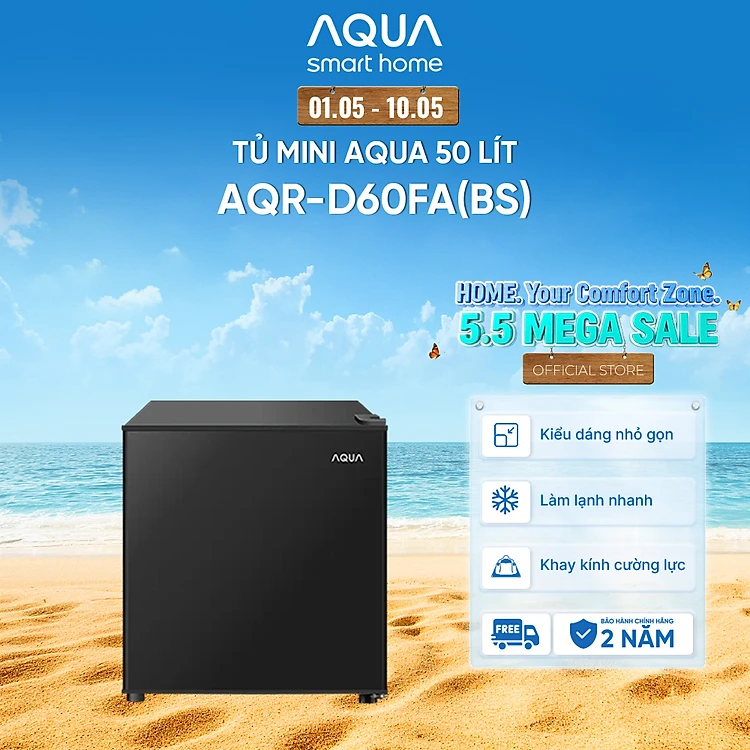 [DAILY] Tủ lạnh Aqua 50 lít AQR-D60FA(BS) - Freeship toàn quốc - Hàng chính hãng