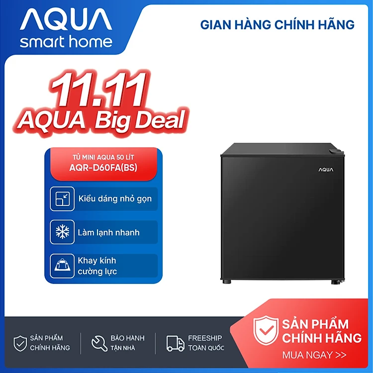 [DAILY] Tủ lạnh Aqua 50 lít AQR-D60FA(BS) - Freeship toàn quốc - Hàng chính hãng