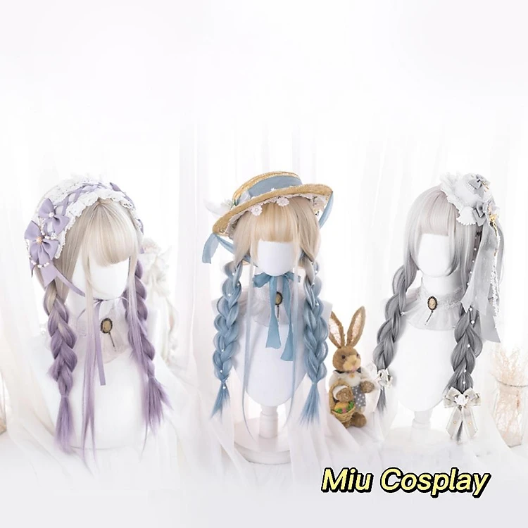 [sẵn] Wig/Tóc giả Ombre dễ thương vintage mix màu tím, xanh, xám - Teen/Lolita A25/A89/A75 [Miu Cosplay]
