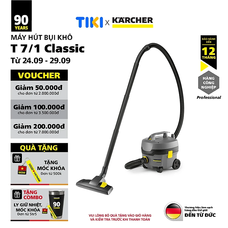 [Sản xuất Châu Âu] Máy hút bụi khô công nghiệp Karcher T 7/1 Classic - Hàng chính hãng