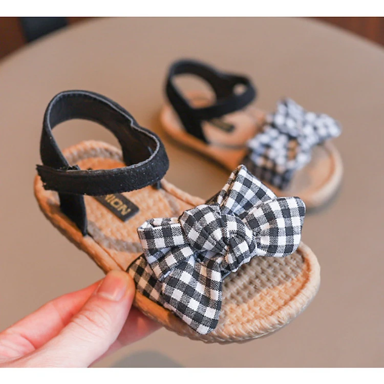Sandal Nơ Caro Màu Trắng Đen với thiết kế chiếc nơ caro cách điệu, bé sẽ trông như một nàng công chúa khi diện mẫu này.