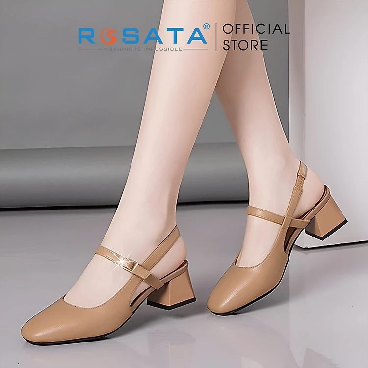 Sandal nữ bít mũi, gót vuông, quai cài ROSATA RO622 - 5p - Nâu, Kem - HÀNG VIỆT NAM - BKSTORE