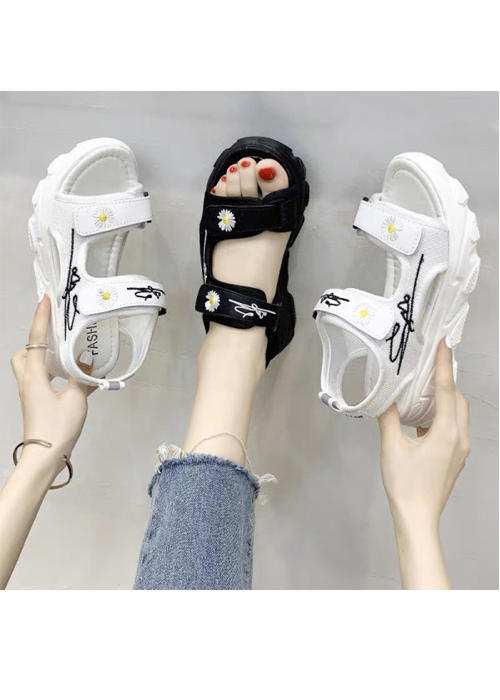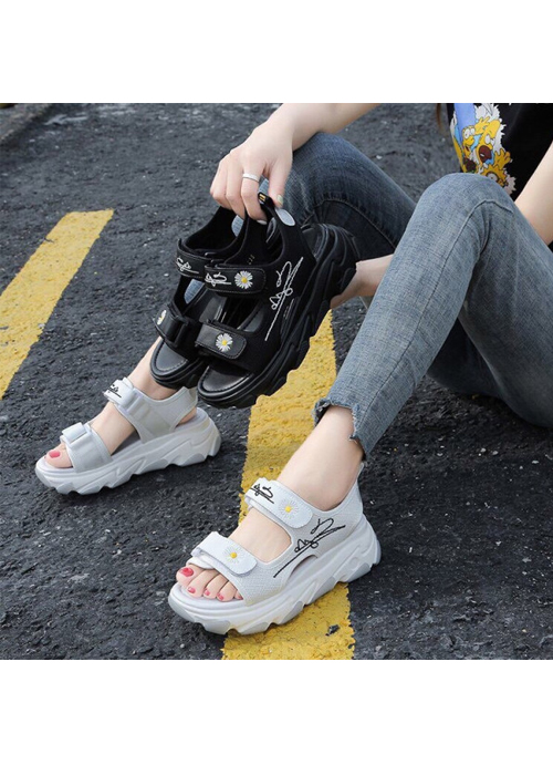 Sandal nữ thời trang đế cao kiểu dáng cao cấp 2 quai ngang hoa cúc cực sịn SD03