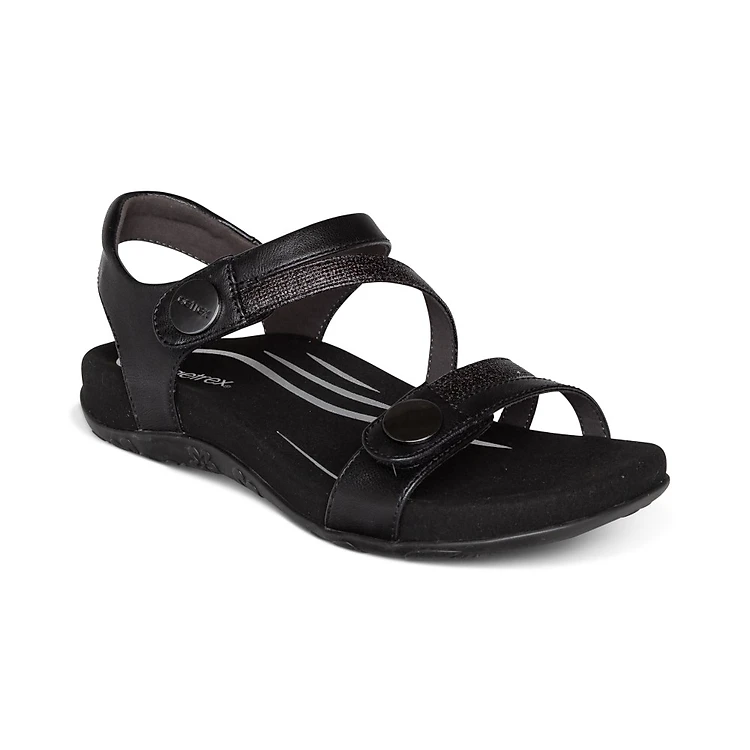 Sandal sức khỏe nữ Aetrex Jess Black - giày quai hậu ôm vòm chân, đệm memoryfoam